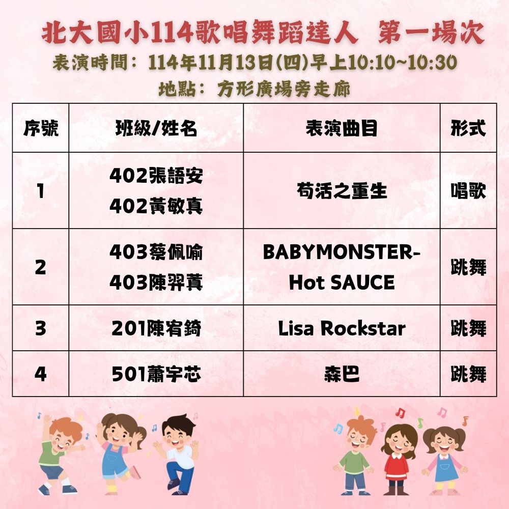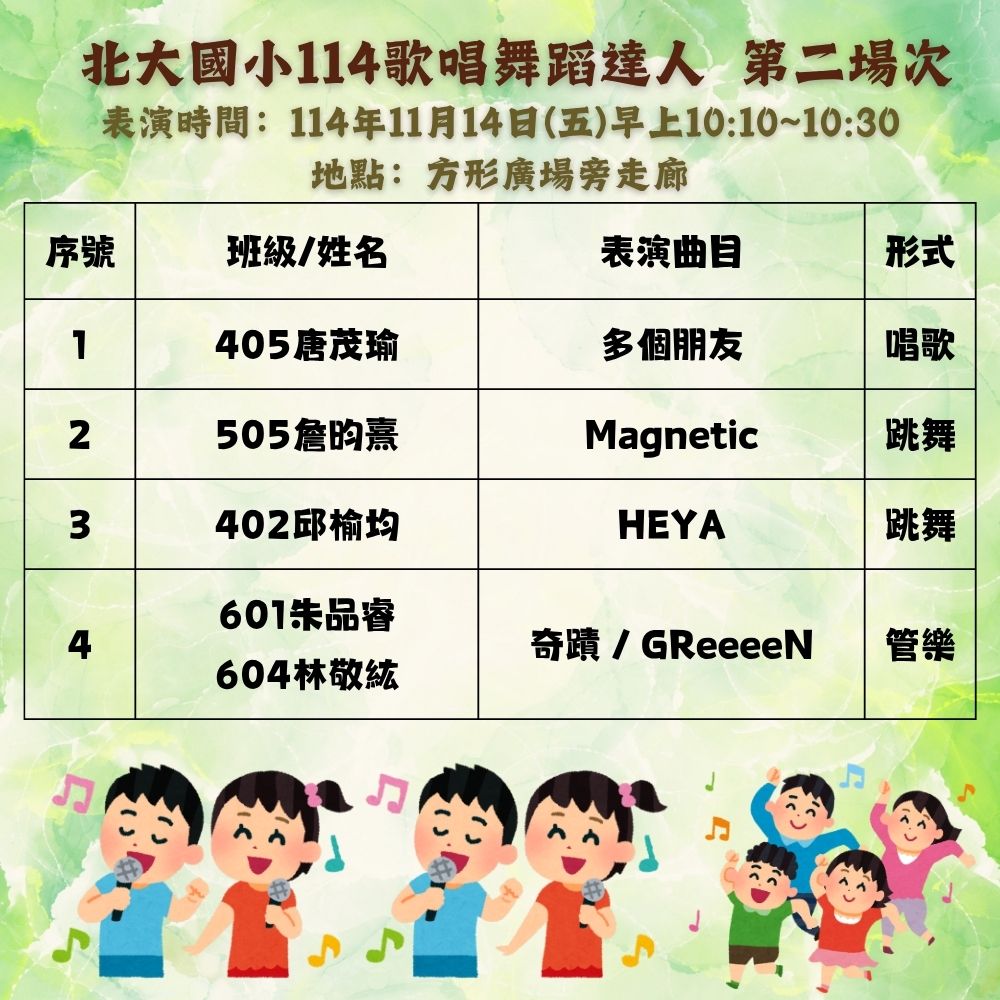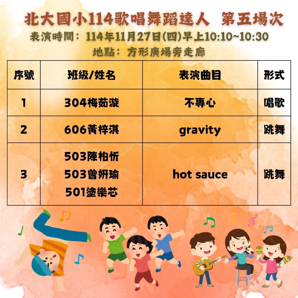 【公告】114學年度上學期歌唱舞蹈達人表演場次名單(更新版)