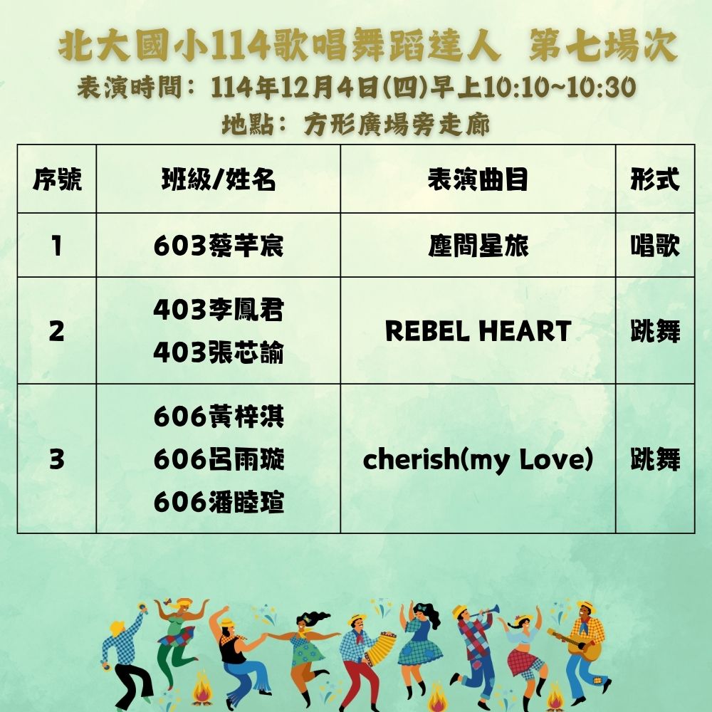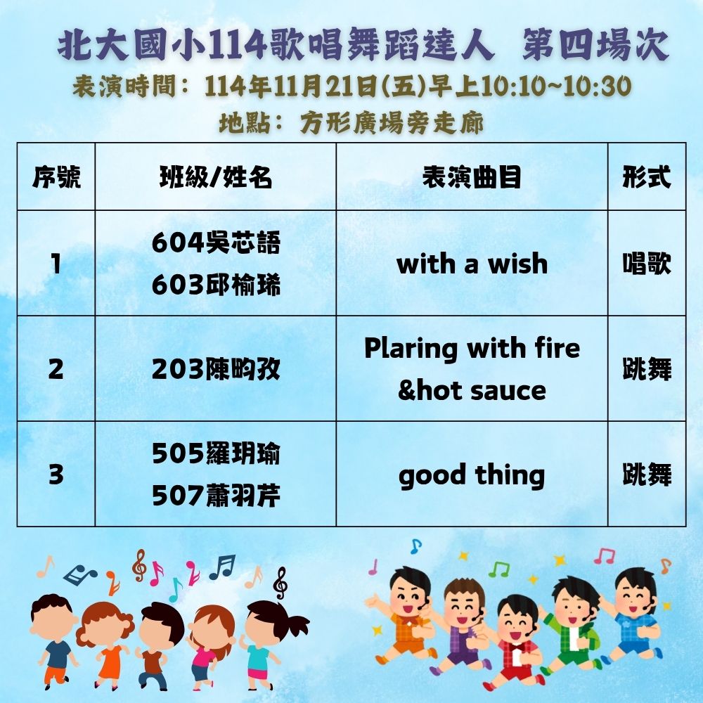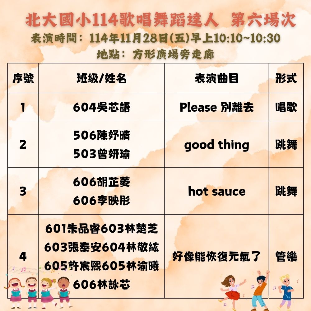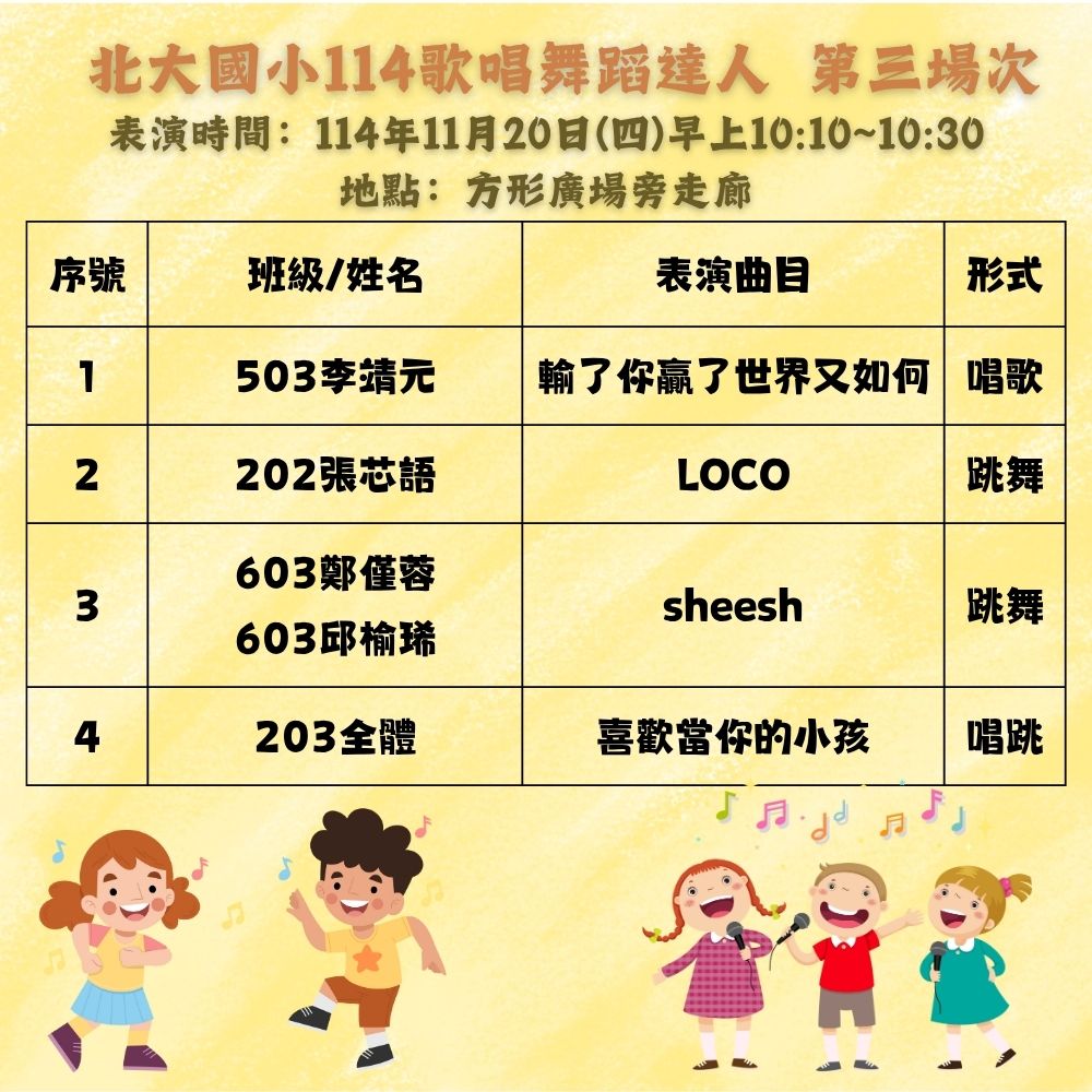 【公告】114學年度上學期歌唱舞蹈達人表演場次名單(更新版)