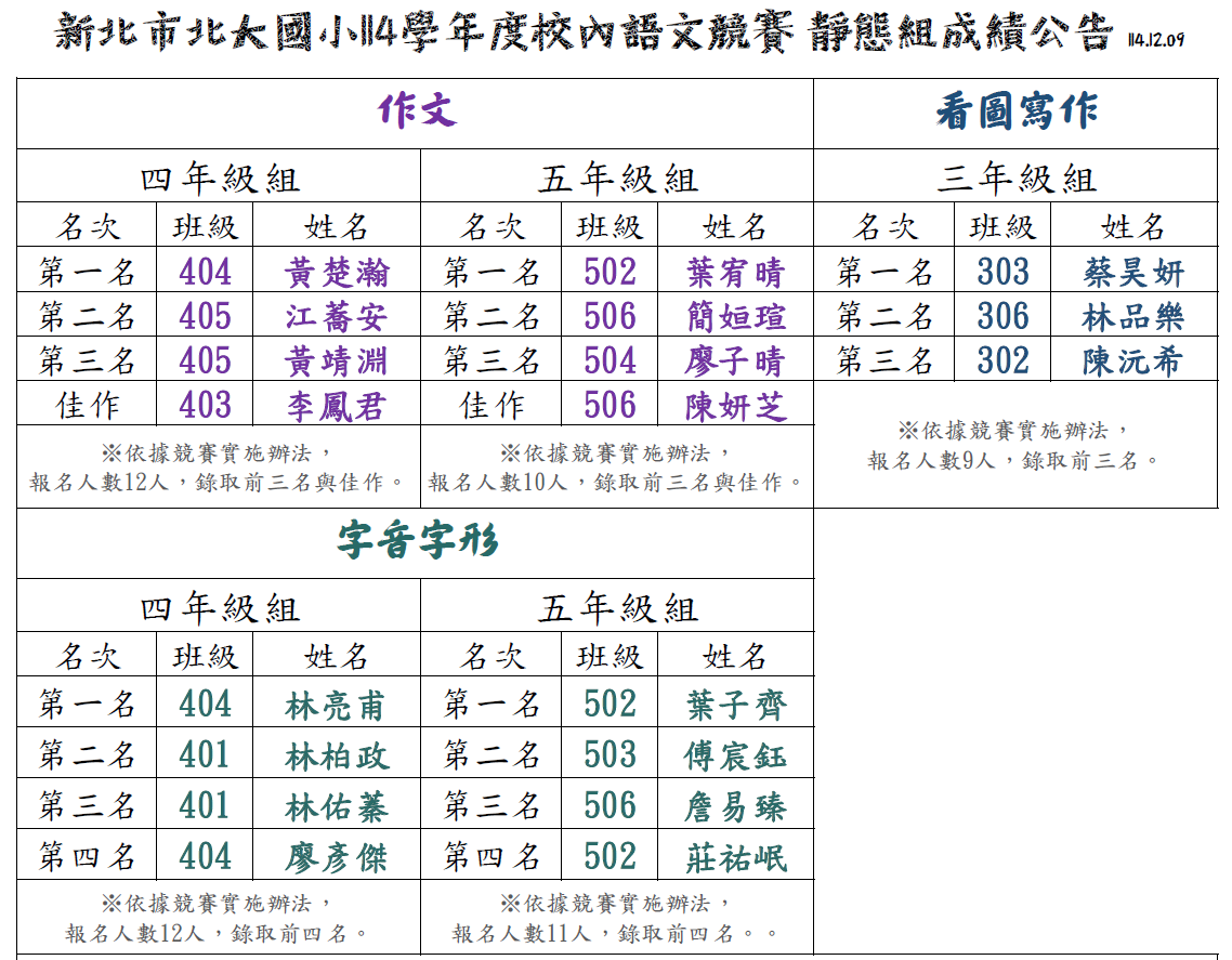 【競賽】114校內語文競賽靜態組成績公告12.09